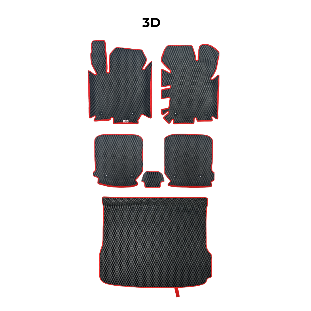 Each set is custom-made for a specific car model, precisely tailored to the shape of the floor. You can choose the color, cell pattern, and edging to perfectly match your car’s interior.